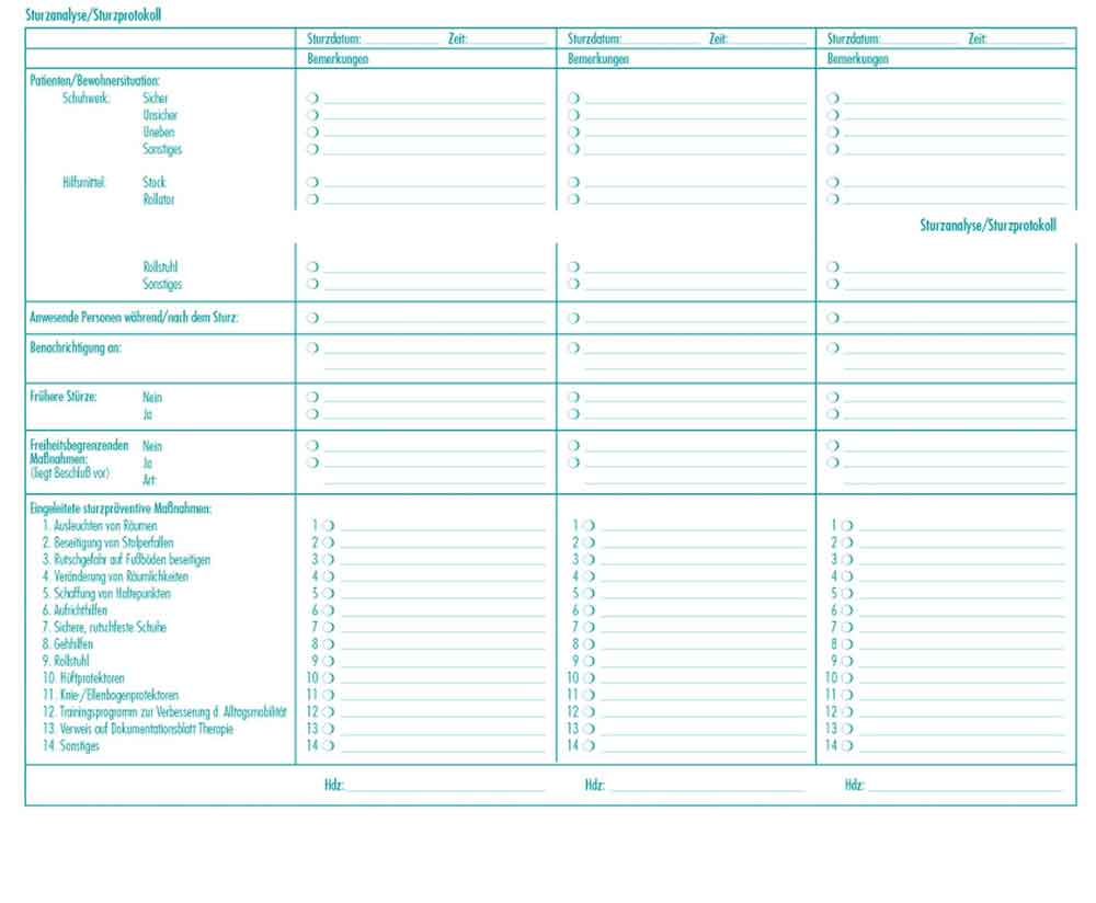 Formular "Sturzanalyse/-protokoll" - Zubehör für Dokumentationsmappen