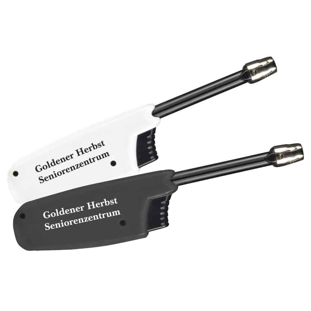 Stabfeuerzeug - mit großer Werbefläche - einfache Handhabung Material: KunststoffGröße: 170 x 45 mmFarbe: Schwarz Werbeaufdruck: Silber oder WeissWerbeanbringung: 1-seitigDruckverfahren: TampondruckWerbeposition: beide Seiten möglichWerbefläche: 60 x 16 mm