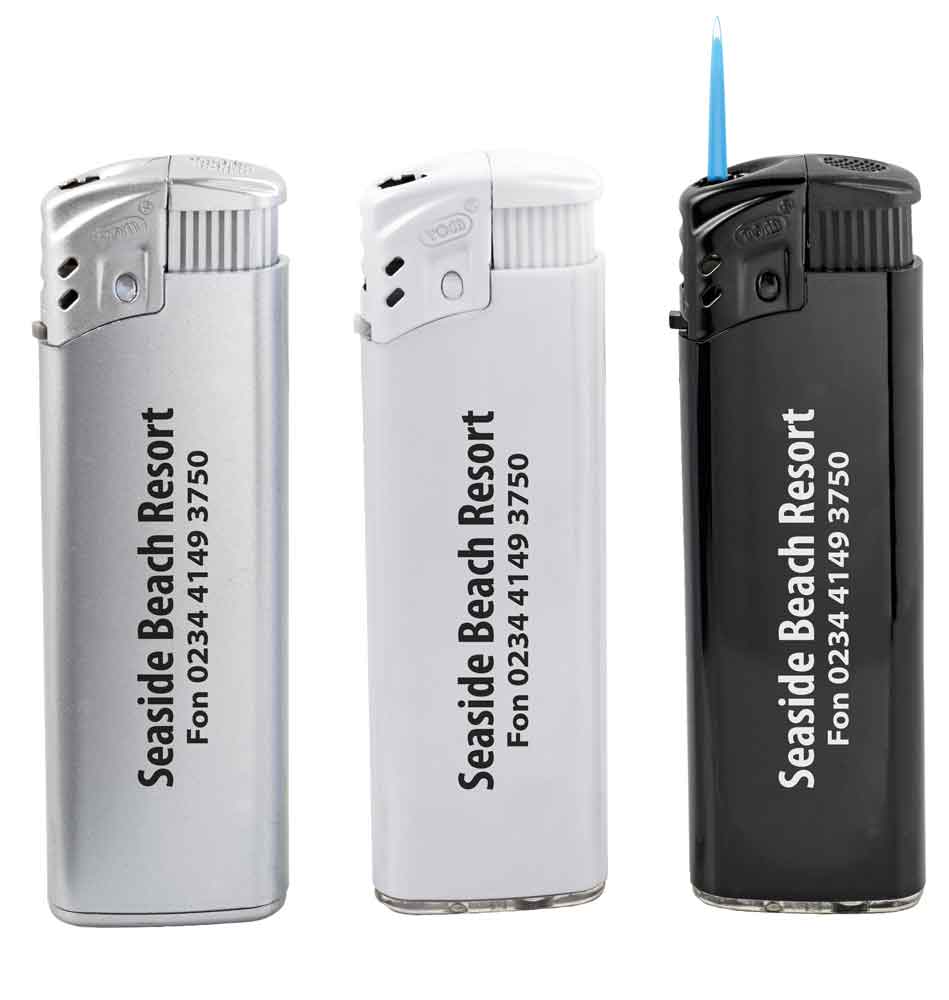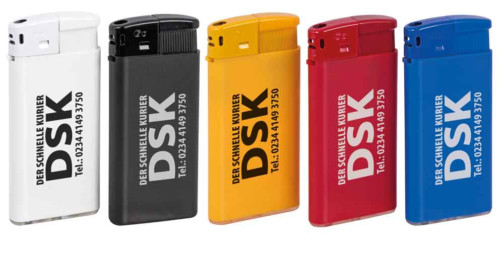 Elektronikfeuerzeug - in modisch auffallenden Farben - nachfüllbar und flammenregulierend Material: KunststoffGröße: 80 x 22 mm Werbeaufdruck: Schwarz oder WeissWerbeanbringung: 1-seitigDruckverfahren: TampondruckWerbeposition: beide Seiten möglichWerbefläche: 57 x 15 mm