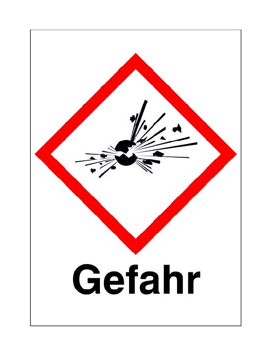 In der Gefahrstoffkennzeichnung werden verschiedene Symbole nach dem Global Harmonisierten System (GHS) verwendet, darunter Symbole für explosive, entflammbare, ätzende und giftige Stoffe.
