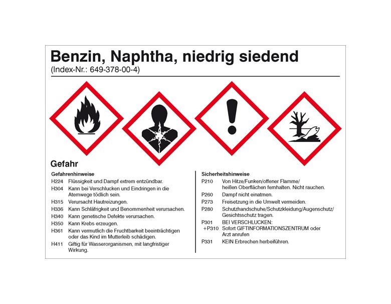 Gefahrstoffetikett - Benzin Naphtha niedrig siedend
