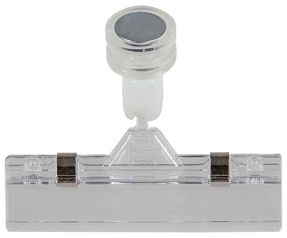 Beweglicher Clip - zur schnellen und flexiblen Befestigung von Werbeschildern und Preisauszeichnungen am POS Ausführung: breitBefestigung: Clip mit Magnetkopf und KlemmeClipbreite: 80 mmSaugnapf: ø 45 mmFarbe: Transparent VE = 1 Stück