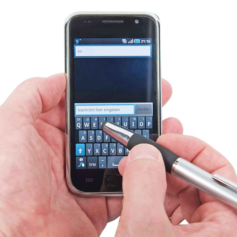 Multifunktionsstift - für Smartphone oder Tablet-PC - weiche Gummimanschette - keine störenden Fingerabdrücke Material: KunststoffMaterialfarbe: Silber/SchwarzMinenfarbe: Blau