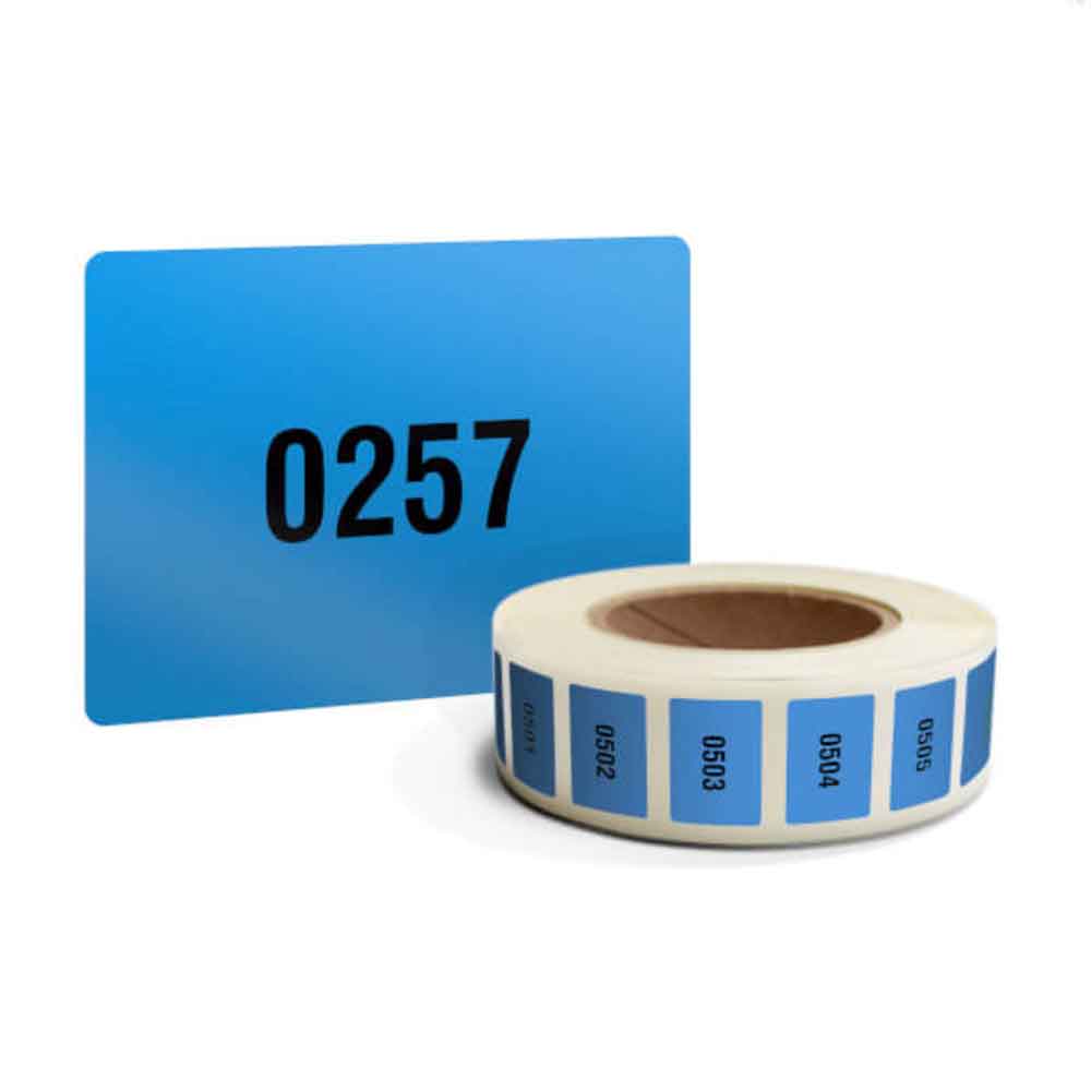 Fortlaufend nummerierte Etiketten - Rolle - Zahlen: 0001-1000 - rechteckig - 5 Farben