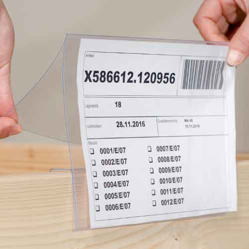 Selbstklebende Kennzeichnungstaschen sind praktisch und einfach in der Anwendung. Sie eignen sich hervorragend zur dauerhaften Visualisierung diverser Lager- und Transportbehälter.