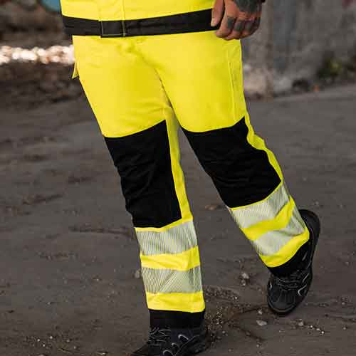 Die Stoffzusammensetzung der Warnschutzhosen besteht oft aus einer Polyester-Baumwollmischung, welche einen angenehmen Tragekomfort bietet. Die Durchdachte Features wie Hammerschlaufe, D-Ring, Zollstockschlaufe, Kniepolstertaschen und eine seitliche Cargotasche ergänzen die Funktionalität. Verstärkte Nähte an beanspruchten Stellen dienen der Verbesserung der Haltbarkeit und Lebensdauer.