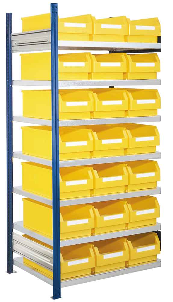 Übersichtliche und geordnete Lagerung von Kleinmaterial - Regal in 2 Farben wählbar - zusätzliche Anbaufelder erlauben den Bau eigener Regalanlagen - Fertigungsstandort Deutschland