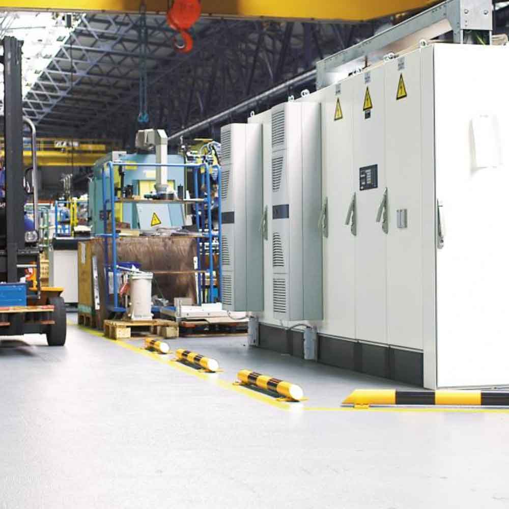 • Rollstopp-Balken als Abstandhalter für Wandanbauten und Schutz vor Flurförderzeugen, Hubwagen, Roll-Container und Transportwagen
